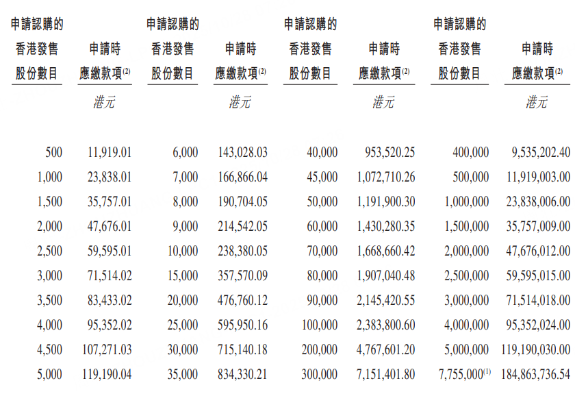 乙组门槛为30万股,申购所需资金约715.14万港元。