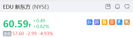 新东方:第一财季营收同比增长6.1%,净利润下降1.9%,盘前股价跌近5%
