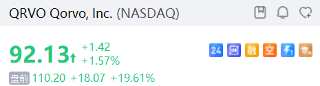 射频芯片企业Qorvo盘前涨超19%,消息称与Skyworks Solutions达成合并协议