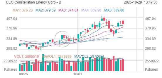 富国银行给予Constellation Energy股票"增持"评级,目标股价设定为每股478美元。这意味着该股较4月22日收盘价有22%的上涨空间。