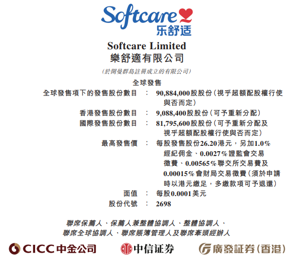 乐舒适(2698.HK))今起招股,发售价将不高于26.2港元,每手200股,一手入场费5292.85港元,预期H股将于2025年11月10日(星期一)上午九时正在联交所开始买卖。