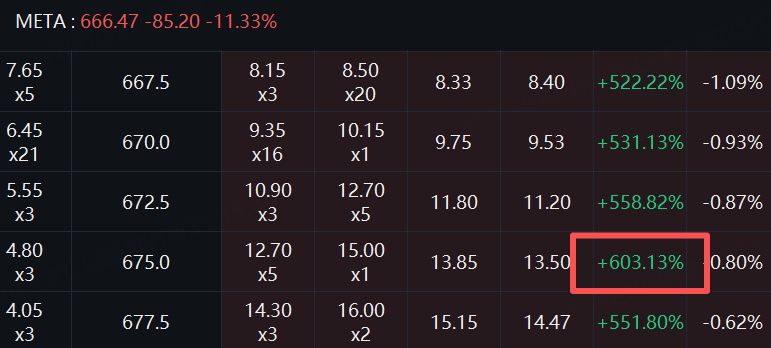 Meta认沽合约的成交价格集体飙升,最高涨幅超600%!