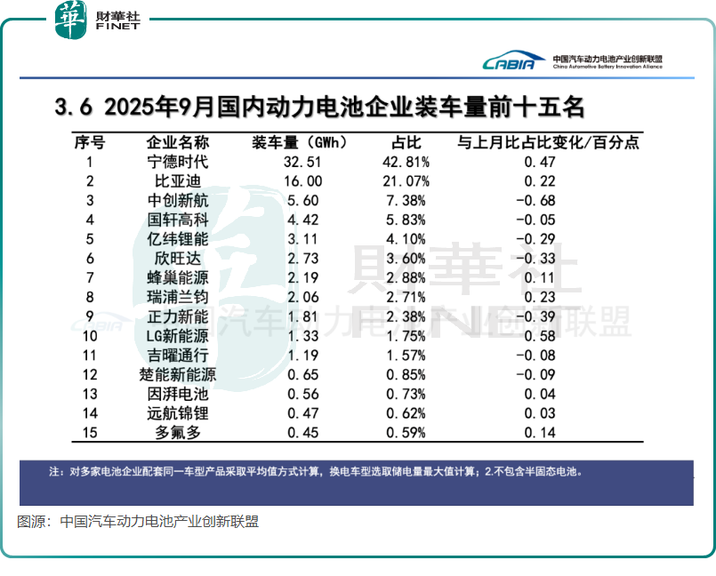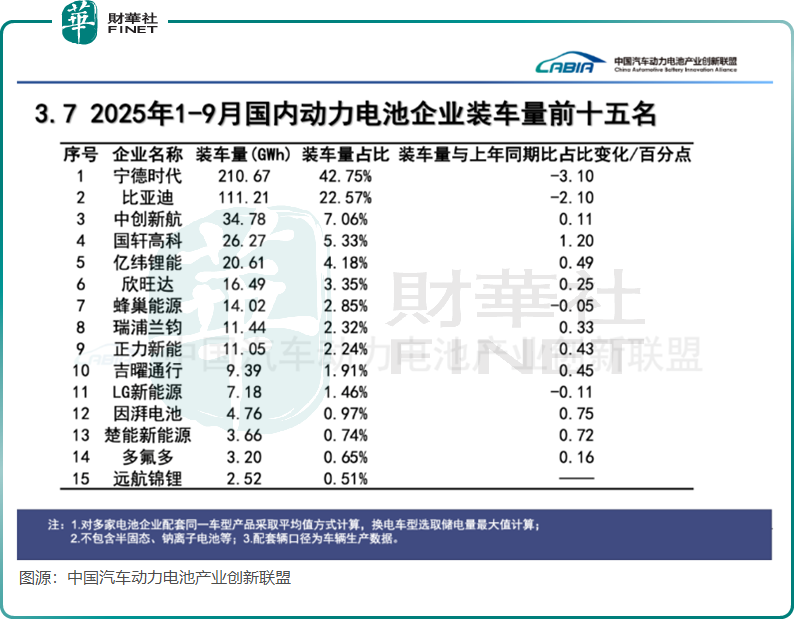 中国汽车动力电池产业创新联盟数据显示,在国内动力电池企业装机量方面,中创新航今年1-9月市占率同比微增0.11个百分点至7.06%,而宁德时代和比亚迪市占率同比均出现下降。