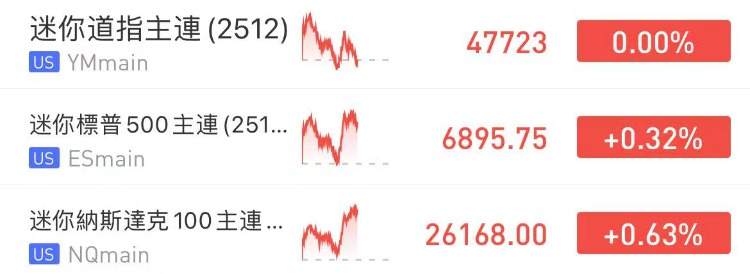 美股三大指数期货盘前走强,纳指期货 $NQmain 涨0.63%,标普500期货 $ESmain 涨0.32%,道指期货 $YMmain 持平。