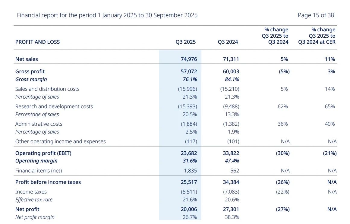 第三季度GLP-1药物销售额367.4亿丹麦克朗,预估372.7亿丹麦克朗。
