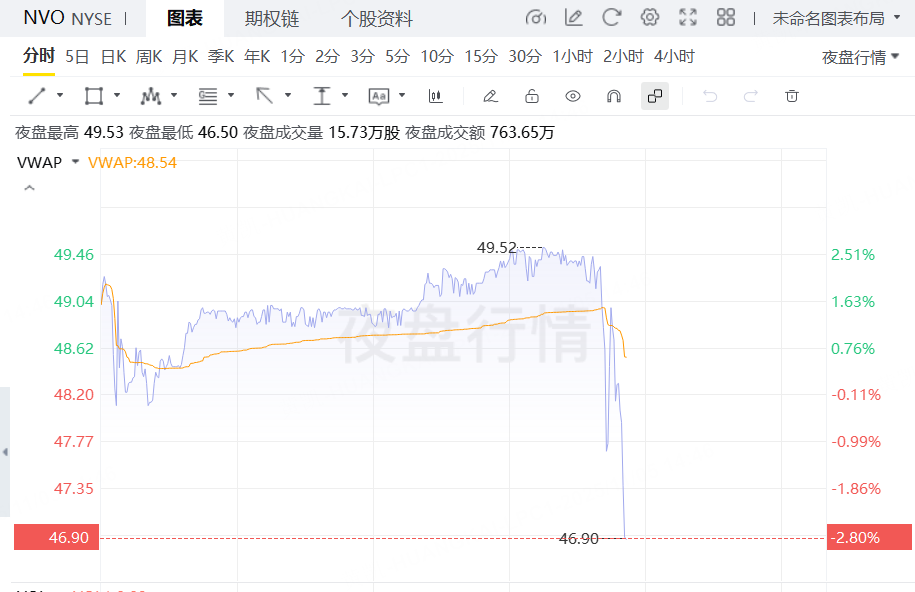 财报发布后,诺和诺德美股夜盘跌近3%。
