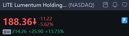 通信设备公司 Lumentum Holdings Inc. 盘前大涨超13%,26财年Q1营收、营业利润率及每股收益均达到指引区间上限。
