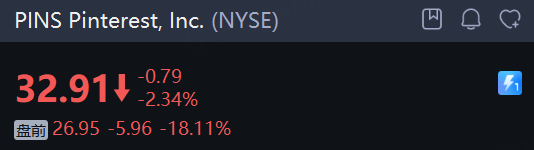 Pinterest, Inc. 盘前大跌18%。公司三季度每股收益低于市场预期;预计第四季度营收将在 13.1亿至13.4亿美元 之间,中位数 13.25亿美元,低于华尔街预期的 13.4亿美元。