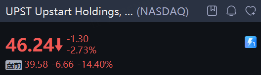 Upstart Holdings, Inc. 盘前大跌14%。这家借贷平台预计第四季度营收为 2.88亿美元,低于市场普遍预期的 3.037亿美元;调整后息税折旧摊销前利润(EBITDA)预计约为 6300万美元,低于Visible Alpha估计的 7070万美元。
