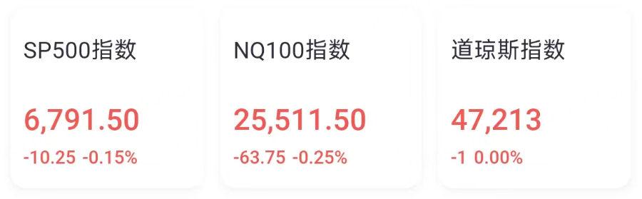 美国超微公司 跌超4%。公司三季度营收、利润及资本开支均高于预期,但第四季度营收指引未能如市场预期般“更激进”。分析称市场仍担心兑现速度不及预期。