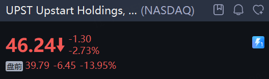 Upstart Holdings, Inc. 大跌14%。这家借贷平台预计第四季度营收为 2.88亿美元,低于市场普遍预期的 3.037亿美元;调整后息税折旧摊销前利润(EBITDA)预计约为 6300万美元,低于Visible Alpha估计的 7070万美元。