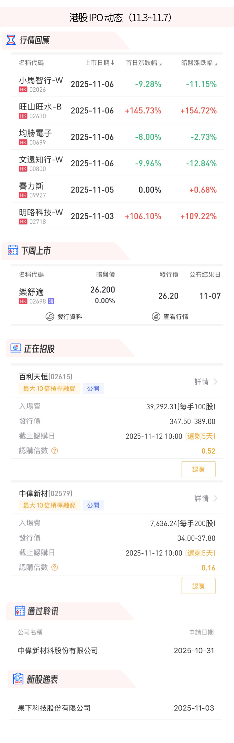 港股IPO动态