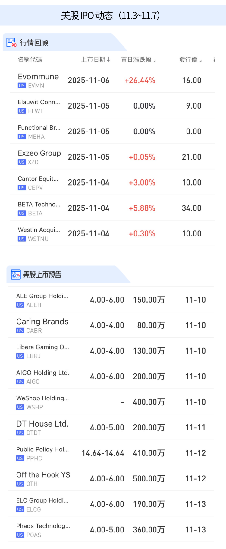 美股方面,预计下周有10家公司上市,其中PPHC是一家政府关系服务提供商,此前在伦敦证券交易所创业板(AIM市场)挂牌上市。