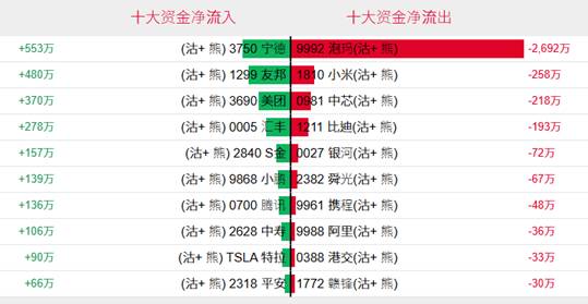 淡仓(认沽证及熊证)方面,近5日合计,宁德时代、友邦保险、美团等相关淡仓分别约553万、480万及370万港元资金净流入部署;泡泡玛特、小米集团及中芯国际等相关淡仓则分别约2692万、258万港元及218万港元资金净流出。