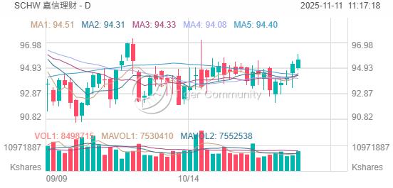 摩根士丹利指出,Schwab的净现金占市值比例为12.3%,自由现金流收益率为8.7%。其股价年初至今上涨约29%。