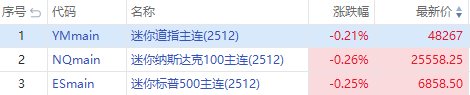 美国史上最长政府关门期的结束,美股三大期指盘前小幅走低,截至发稿,纳指期货 $NQmain 跌0.26%,标普500期货 $ESmain 跌0.25%,道指期货 $YMmain 跌0.21%。