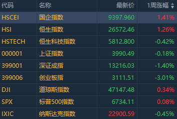 美股方面,本周道琼斯指数涨0.34%,报47147.48点;纳斯达克指数跌0.45%,报22900.59点;标普500指数涨0.08%,报6734.11点。
