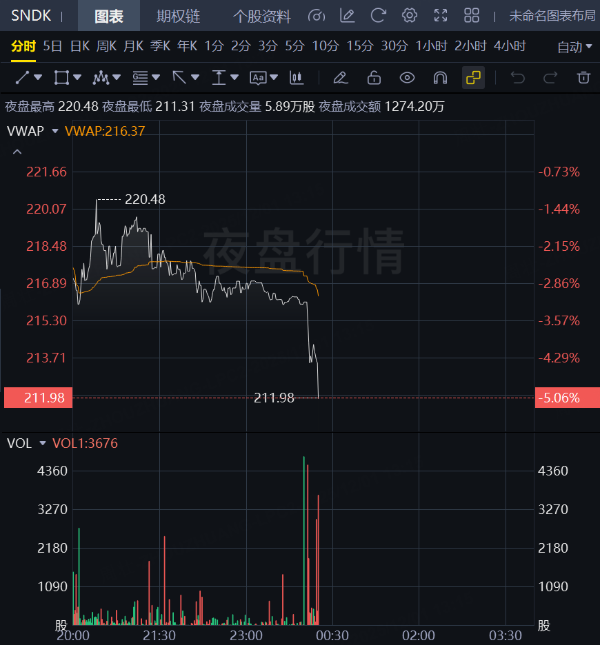 12月1日,美股夜盘时段,存储概念股集体下跌,SanDisk跌超5%,西部数据、美光科技、希捷科技均跌超2%。