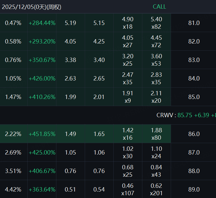 CoreWeave昨日CALL单价格大幅拉升,多张合约的涨幅超400%。