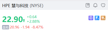 慧与科技盘前跌超8%,业绩展望不及市场预期;