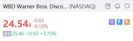 Warner Bros. Discovery盘前涨近4%,据报道,奈飞已提交一份收购其意向资产的方案,其中85%为现金支付;