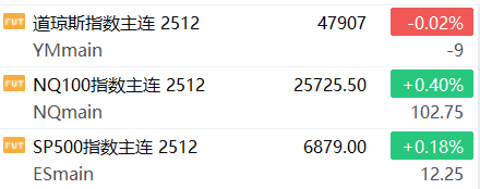 12月5日,美股三大股指期货涨跌不一,截止发稿,道指期货跌0.02%,纳指期货涨0.40%,标普500指数期货涨0.18%。