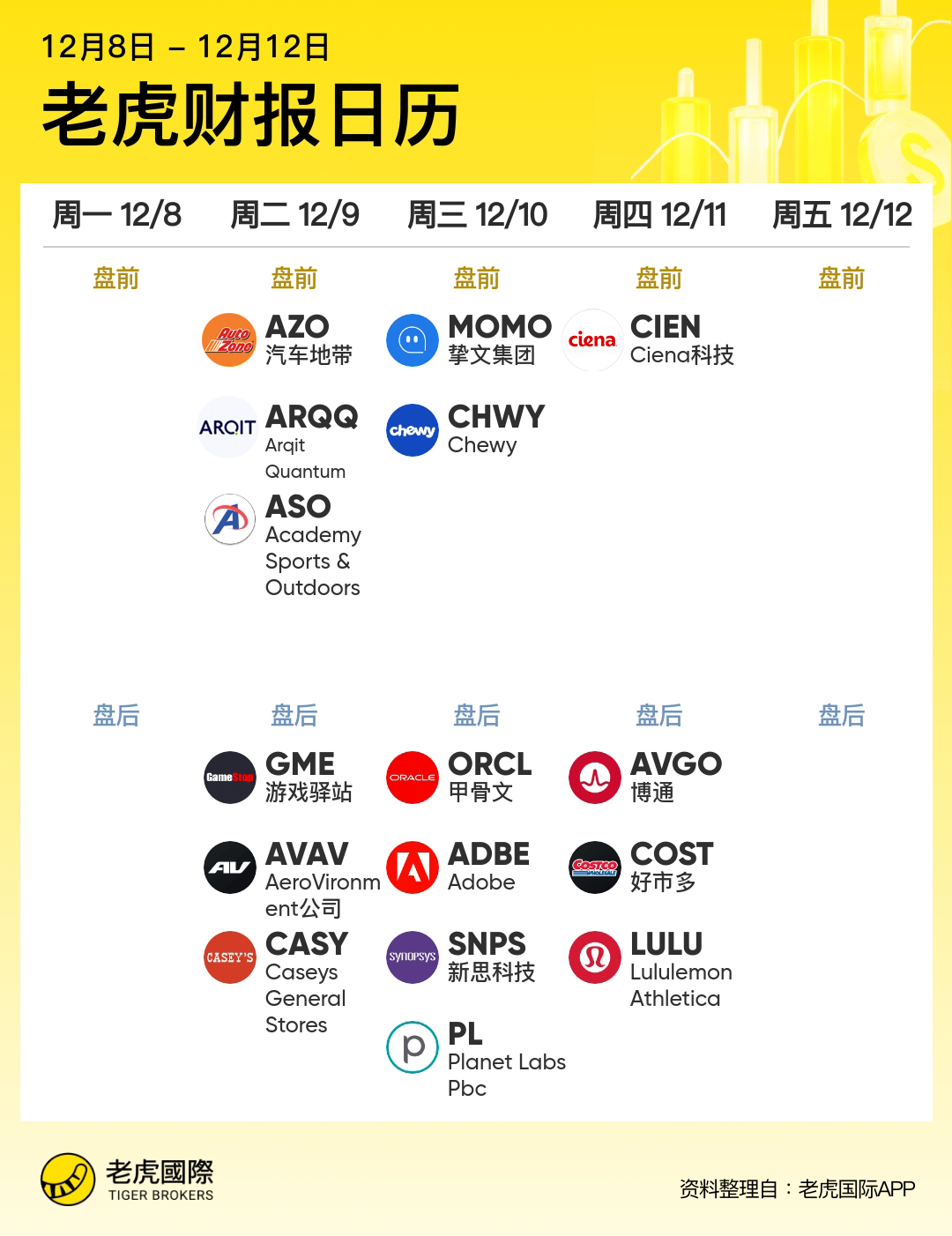 本周,游戏驿站、甲骨文、Adobe、新思科技、博通、好市多、Lululemon等公司将陆续发布财报。