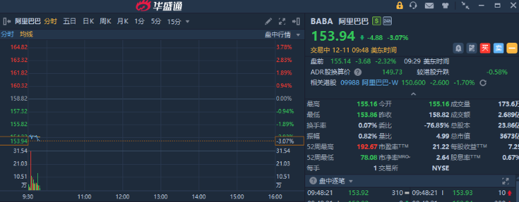 华盛资讯12月11日讯,热门中概股集体下挫,阿里巴巴、拼多多跌超3%,哔哩哔哩跌超2%,微博、京东跌约1%。