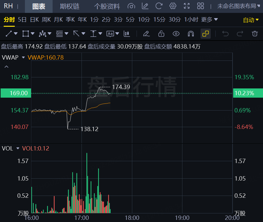 12月12日,豪华家居用品零售商RH盘后大涨逾10%!报告第三季度收入略微超过分析师预期,尽管该公司表示正在经历"近50年来最糟糕的房地产市场"。