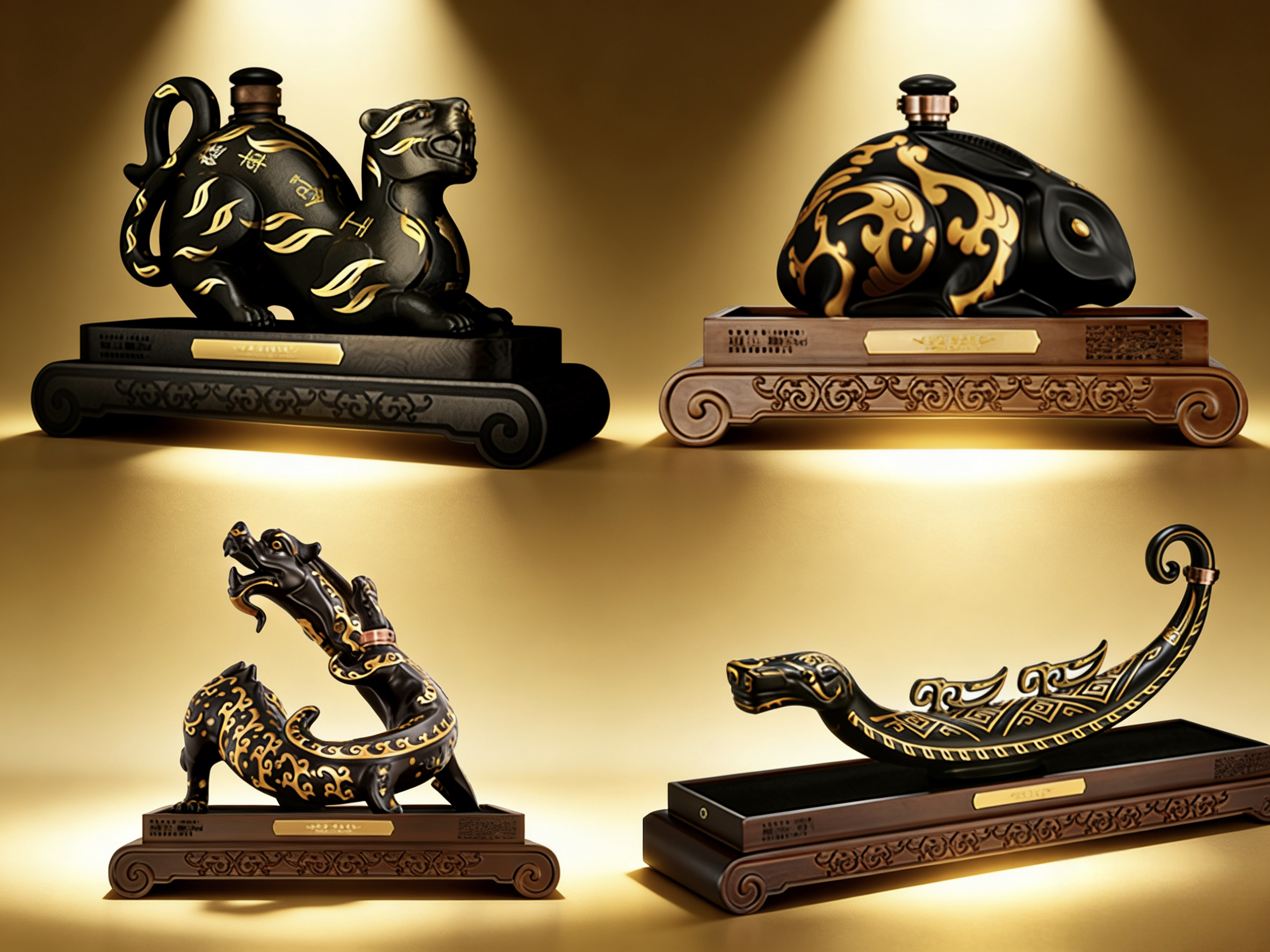 2021年起,珍酒在行业内创新推出“错金”生肖系列,首款“错金铭文虎”灵感源自西汉南越王博物馆藏品错金铭文虎节,“错金兔”灵感源自观复博物馆藏品错金银兔形镇,“错金龙”灵感源自故宫博物院藏品错金铜蟠龙,“错金蛇”灵感源自三星堆博物馆藏品青铜蛇,让“沉淀于历史、珍藏于馆阁”的文化遗产真正“活化”和“流动”起来,构建了一条清晰、可持续的文化IP脉络。