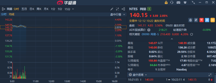 华盛资讯12月12日讯,热门中概股普遍上涨,网易涨近3%,旗下游戏《燕云十六声》海外持续出圈。