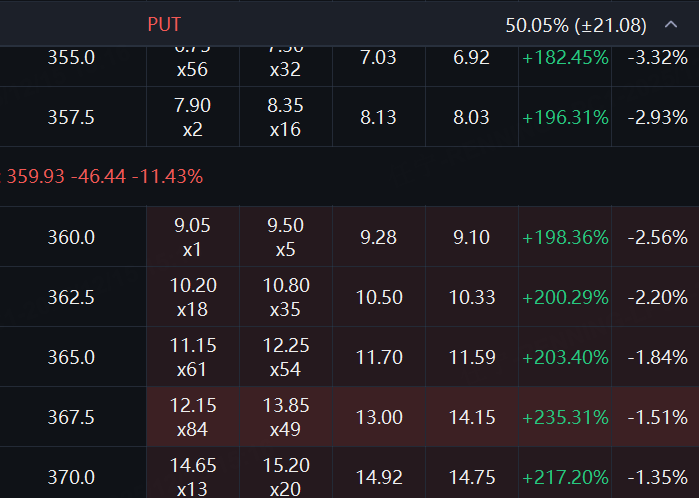 与股价大跌相对应,博通的PUT价格集体大涨,多张合约价格涨幅超200%。