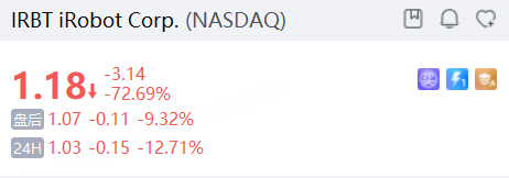 扫地机器人“鼻祖”iRobot续跌超12%,隔夜股价暴跌超70%。公司宣布破产,中国债主或接盘。