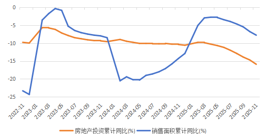 房地产投资依然大幅下行。1-11月房地产投资累计同比下跌15.9%,跌幅较1-10月扩大1.2个百分点,跌幅仅次于2020年2月疫情爆发时期的18.1%水平。房企资金状况仍持续收紧,1-11月房企到位资金同比下跌11.9%,跌幅较1-10月扩大2.2个百分点,其中贷款资金、自筹资金降幅再度扩大。11月30个大中城市商品房成交面积784万平米,同比下降33%,住宅销售持续放缓导致定金及预收款、个人按揭贷款降幅扩大。11月房地产工程建设相关指标仍处于长期下行趋势中,国房景气指数降至91.9,较10月回落0.52个百分点,房地产市场下行压力仍然较大。房地产销售增速持续放缓。1-11月全国新建商品房销售面积累计同比下跌7.8%,跌幅较1-10月扩大1.0个百分点;全国商品房待售面积累计同比上涨4.0%,较1-10月上升0.2个百分点,短期内库存面积仍处于历史较高位置。11月,全国70个大中城市房价商品住宅销售价格环比总体下降、同比降幅扩大。其中,一线城市新房和二手房价格同环比仍然负增长,上海新建商品房价格环比上涨0.1%,北京、广州和深圳环比下跌;二、三线城市房价延续弱势。商品房市场受中长期结构性因素影响较深,止跌走稳压力仍然不小,房地产市场转型调整仍需要一个阶段。