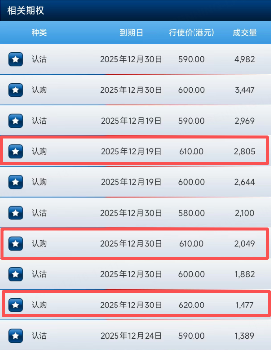 另一只巨头 腾讯控股 ,上午跌超1%。期权方面,多张认购合约的行权价在610港元以上。