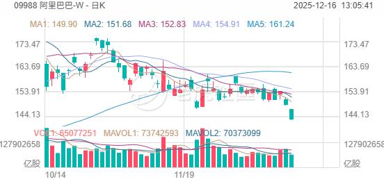 阿里巴巴-W 上午跌约3.6%。近期,以博通、甲骨文为代表的美国AI概念股连续下挫,显然对阿里等中国科技股形成不利影响。