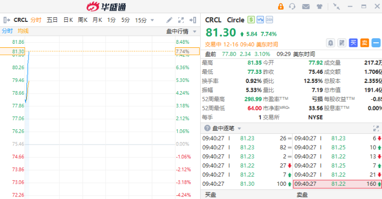 比特币今日反弹至8.7万美元上方,加密货币股早盘集体走高,Circle大涨超7%,Strategy涨超3%,Robinhood、Coinbase涨超2%。