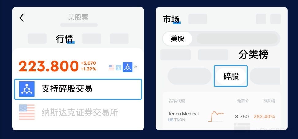 第一步,找标的:搜索你想买的股票(比如$特斯拉(TSLA.US)),点击个股详情页,行情右侧会展示碎股图标。或者通过【市场】-【美股】-【分类榜】来寻找支持碎股交易的股票。