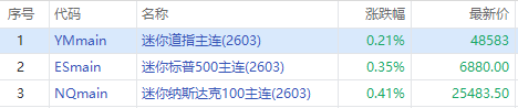 周三美股盘前,三大期指盘前小幅走高,截至发稿,纳指期货 $NQmain 涨0.41%,标普500期货 $ESmain 涨0.35%,道指期货 $YMmain 涨0.21%。