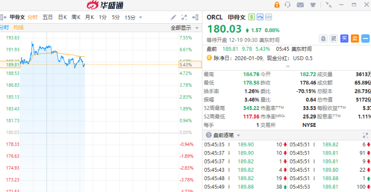 甲骨文大涨超5%,因TikTok交易进展和OpenAI融资谈判双重利好;半导体板块盘前普涨,美光科技涨超2%,英伟达、AMD、博通均涨超1%。
