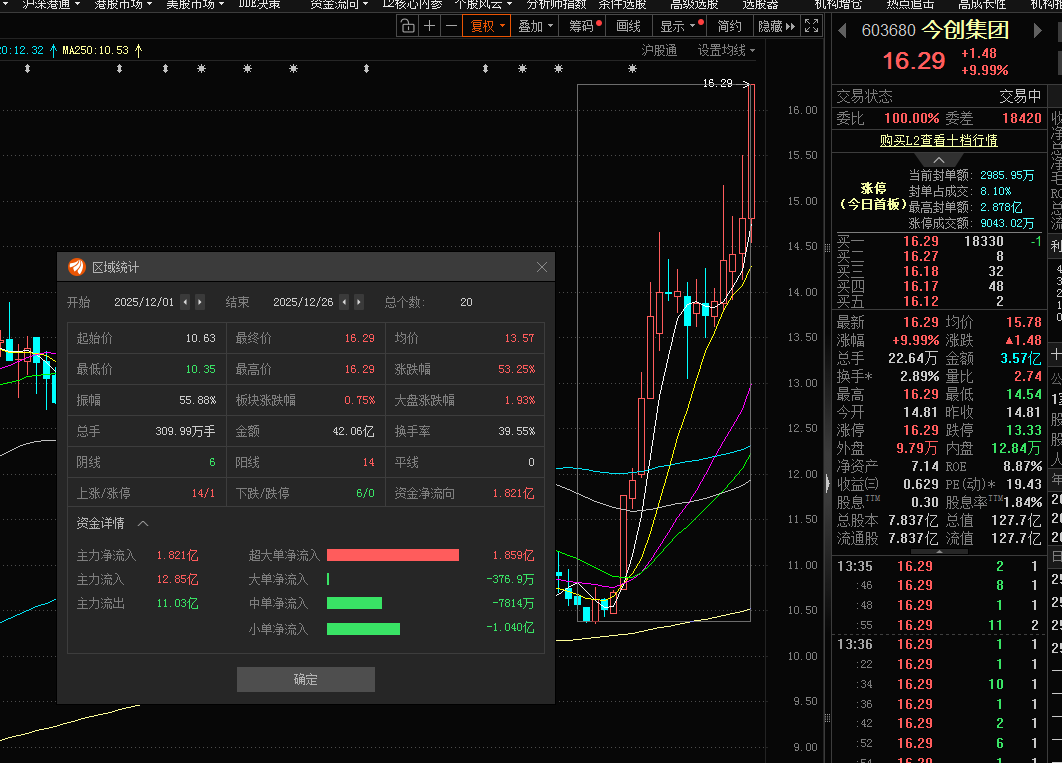 12月26日,今创集团(603680)股价强势走高,收盘涨停。自12月以来,该公司股价累计涨幅已超过50%。