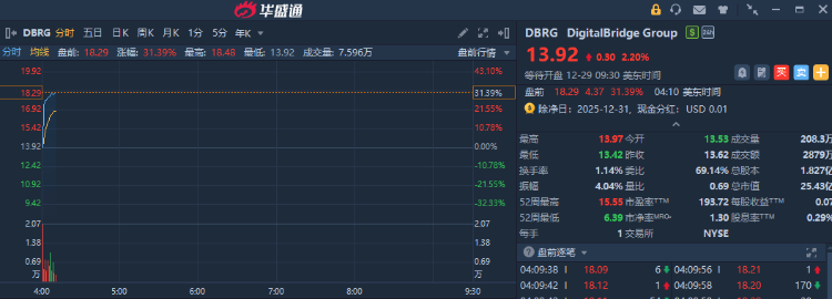 数据中心投资巨头DigitalBridge $DBRG 盘前大涨超30%,传软银接近收购该公司。