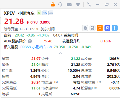 中概汽车股盘前回调,小鹏汽车跌超4%,蔚来、理想汽车跌约3%。