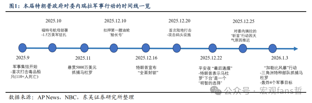 “意料之外”的军事突袭——无视国际舆论与国内法规,时隔37年再度逮捕敌对国家首领。在进行了为期数月的军事封锁后,美军于2026年1月3日突袭了委内瑞拉首都卡拉卡斯,并在三角洲特种部队的协助下逮捕了委内瑞拉总统马杜罗及其夫人,两人随后被押解回美国,并预计将在纽约联邦法院接受审判(详见报告《“意料之外,情理之中”的委内瑞拉事件——元旦假期海外市场回顾》)。本次对委内瑞拉的军事突袭,极大的超出了市场对特朗普外交政策的预期:一来,这是自1989年美国入侵巴拿马逮捕最高领导人诺列加以来,时隔37年再度通过军事手段直接“斩首”他国首领;二来,美国这次特别军事行动无视了《联合国宪章》中“仅在自卫或得到联合国安全理事会授权的情况下才能对他国动用武力打击”的规定,招致了国际舆论的反对与谴责;三来,美国宪法也规定总统的战争行动必须得到国会授权,而由于本次突袭行动特朗普并未提前知会国会方面,因此其后续也可能招致民主党“违宪”指责带来的政治压力。