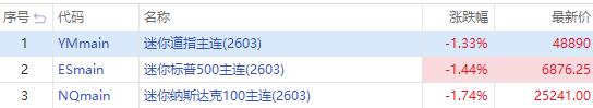 美欧因格陵兰岛归属争端升级,全球股市应声下跌;三大股指期货盘前齐跌,截至发稿,纳指期货 $NQmain 跌1.74%,标普500期货 $ESmain 跌1.44%,道指期货 $YMmain 跌1.33%。