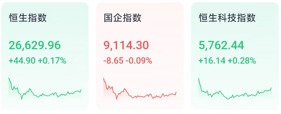 1月22日周四,港股三大指数整体高开低走,收盘涨跌不一。恒生指数涨0.17%,报26629.96点,恒生科技指数涨0.28%,国企指数跌0.09%。
