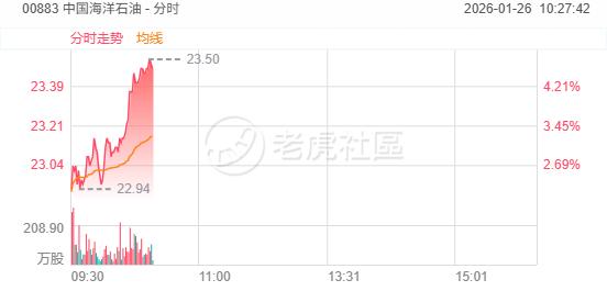 1月26日,港股“三桶油”再度上扬!截至发稿,中国海洋石油 涨超4%, 中国石油股份 涨超3%, 中国石油化工股份 涨超3%。