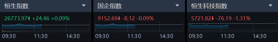 1月26日,港股上午盘恒指、国指盘中冲高,恒生指数午间收涨0.09%,国企指数跌0.09%,恒生科技指数表现较弱,最终下跌1.31%。