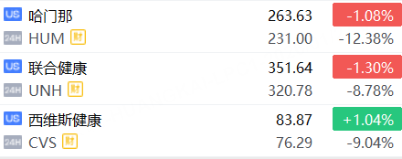 1月27日,美股夜盘时段,美股医保概念股普跌,哈门那跌超12%,西维斯健康跌超9%,联合健康跌近9%。美国医疗保险和医疗补助服务中心(CMS)在公告中表示,预计2027年联邦医保优势计划(Medicare Advantage)的支付费率仅将上调0.09%,远低于分析师此前预期的高达6%的增幅。
