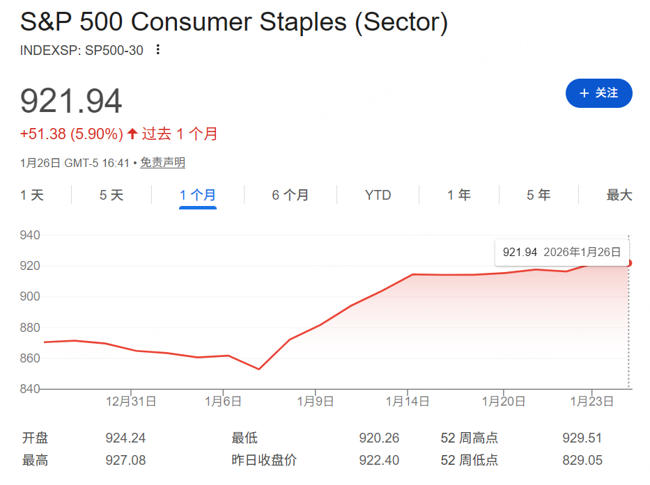 在美国增长和通胀预期发生变化的背景下,投资者轮动至美股中更具防御属性的板块,必需消费品板块迎来了至少25年来最强劲的年度开局,表现明显跑赢大盘。